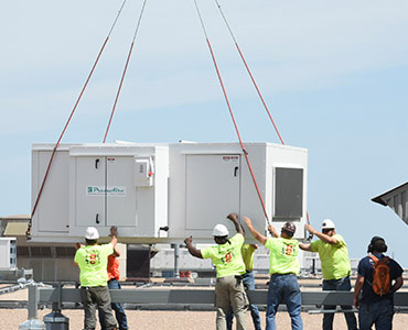 RapidHeli services in Lansing use helicopters as the standard practice for HVAC transport and installation. Helicopter lifts provide an easier, safer, less manpower intensive solution to HVAC unit placement. RapidHeli projects use helicopters to complete commercial HVAC unit installations in a few hours, where a ground crane would have taken substantially longer.
